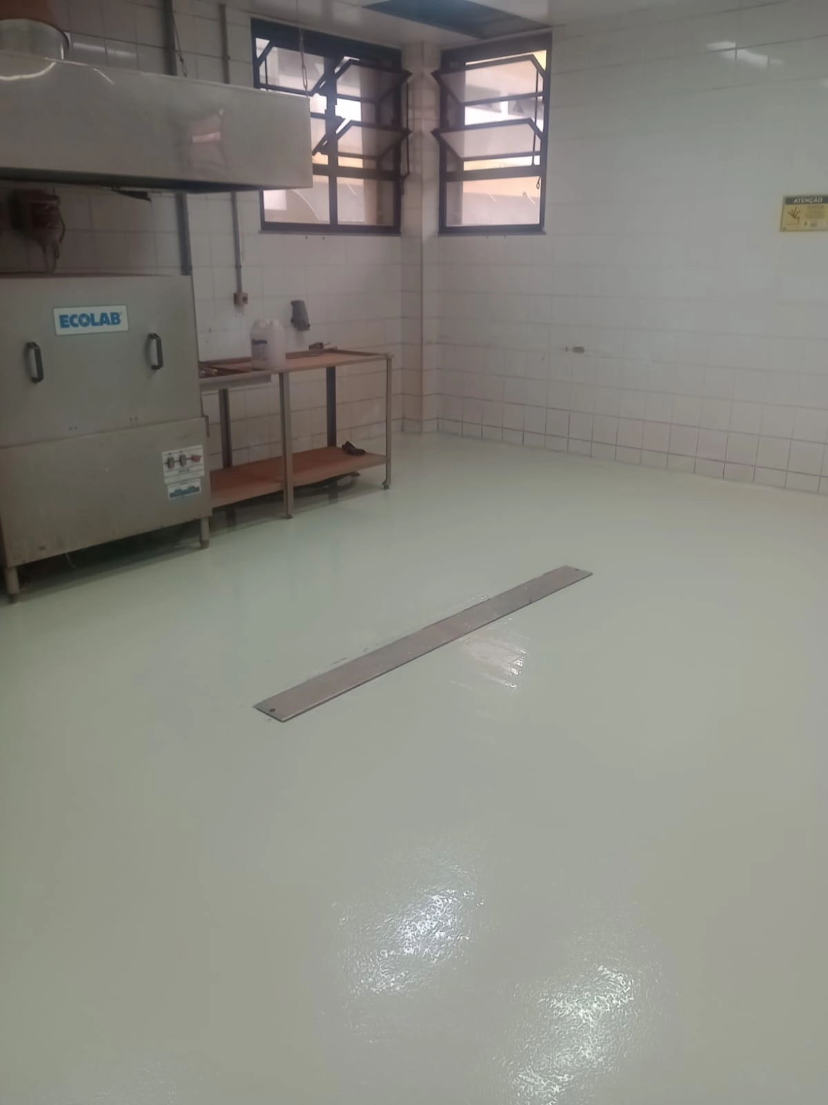 Sistema: pintura epóxi ou autonivelante uretano (dependendo da demanda). Espessura: 0,3 micras (pintura) e de 3 a 6 mm (uretano autonivelante). Resistência térmica: até 60 °C no epóxi | até 120 °C contínuo no uretano (com choque térmico até 150 °C). Resistência química: óleos, gorduras, detergentes, desinfetantes e agentes de limpeza agressivos. Acabamento: antiderrapante, fosco ou brilhante, sem juntas aparentes. Higienização: fácil lavagem, não acumula sujeira e impede infiltração de líquidos. Serve para proteger e revestir o piso de cozinhas industriais, garantindo resistência mecânica, química e térmica, além de atender normas sanitárias (ANVISA, MAPA), oferecendo segurança, facilidade de limpeza e durabilidade em áreas de preparo de alimentos. Cumpre normas sanitárias e facilita aprovação em auditorias. Resistência contra impactos, variações de temperatura e produtos de limpeza. Superfície contínua, sem juntas → evita acúmulo de sujeira e proliferação de bactérias. Pode ser antiderrapante, aumentando a segurança dos colaboradores. Excelente custo-benefício em relação a cerâmicas e pisos convencionais, com menor manutenção.