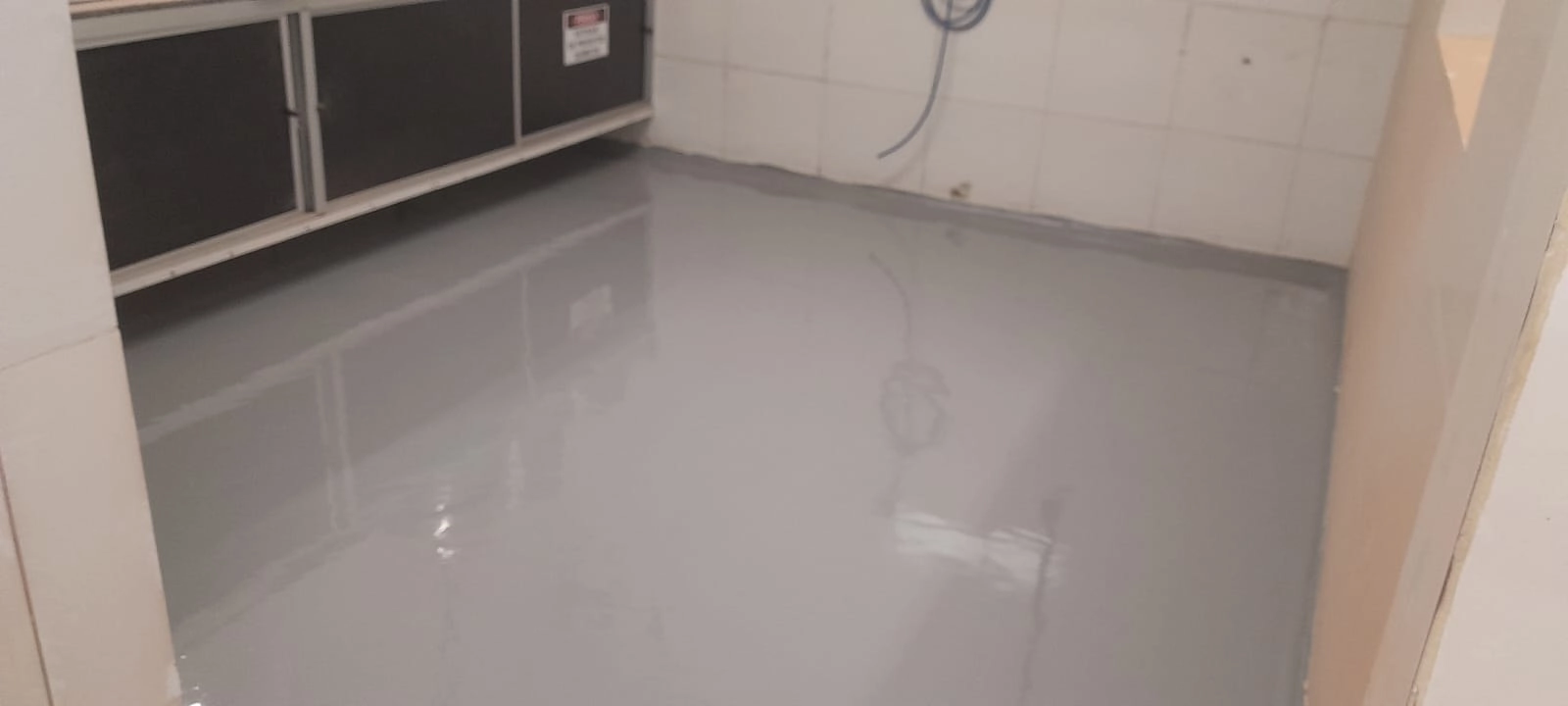 Sistema: Revestimento epóxi autonivelante ou uretano (dependendo da exigência do ambiente). Espessura: de 2 mm (epóxi) a 6 mm (uretano). Resistência química: solventes, ácidos, álcalis, reagentes e produtos de limpeza. Resistência mecânica: tráfego de carrinhos, equipamentos laboratoriais e movimentação de pessoas. Resistência térmica: até 60 °C no epóxi | até 120 °C contínuo no uretano. Acabamento: liso, brilhante ou acetinado, sem juntas e sem porosidade. Serve para revestir pisos de laboratórios, clínicas e áreas controladas, proporcionando uma superfície contínua, resistente a produtos químicos, de fácil higienização e que atenda normas sanitárias e de biossegurança. Superfície contínua, sem juntas, evitando acúmulo de poeira e agentes contaminantes. Alta resistência química para contato com reagentes e solventes. Cumprimento de normas de biossegurança e sanitárias (ANVISA, MAPA). Fácil higienização, essencial em ambientes controlados. Durabilidade, com baixa necessidade de manutenção preventiva.